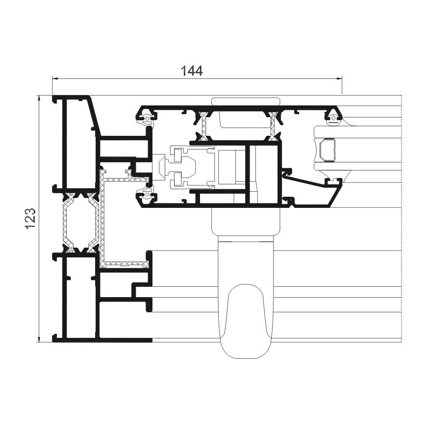 Posibilitatea folosirii tocului cap la cap sau perimetral. Încorporează noua tipologie GALANDAJ dezvoltată pentru a face posibilă deschiderea integrală a spațiului prin ascunderea totală a foilor în camera peretelui clădirii. Se obține astfel o suprafață de deschidere de 100%.